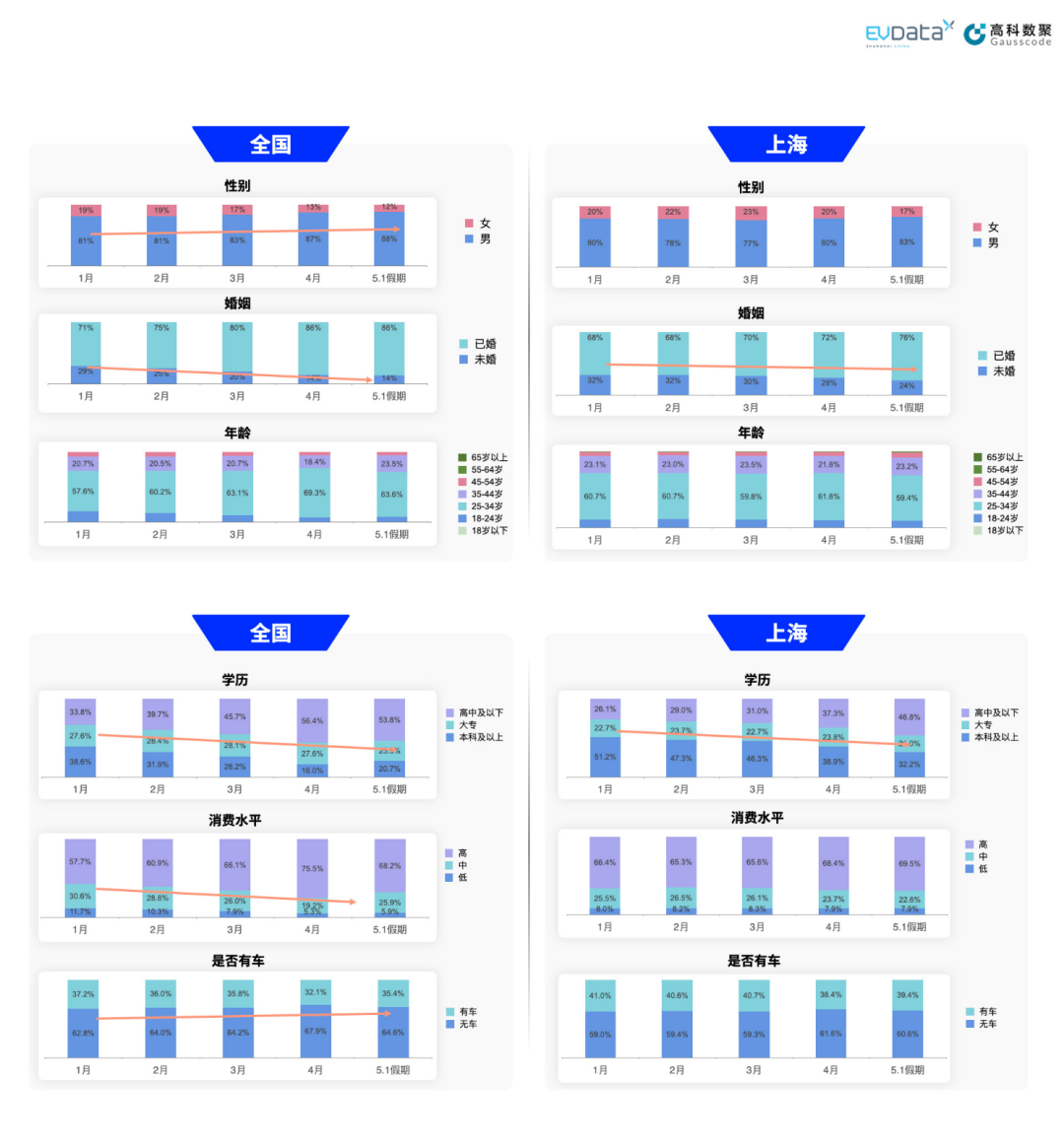 值得注意的是,新能源汽车市场竞争激烈,这也为本土车企带来了独特的竞争机遇。那么从大数据角度看,全国和上海新能源汽车关注人群有哪些变化趋势?上海新能源汽车出行特征如何?上海新能源汽车数据中心联合PA视讯PlayAce,一同透过数据带你看今年上海新能源汽车“五一”出行的新趋势。